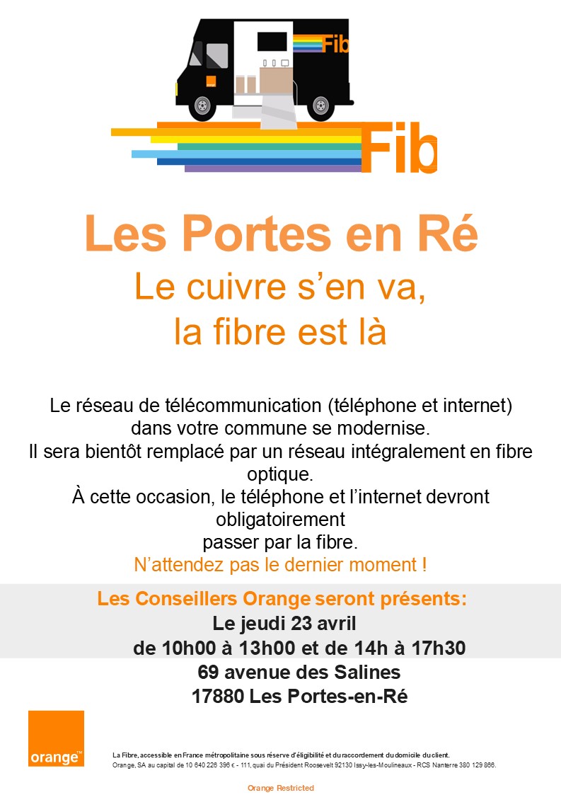 Des conseillers en télécommunication seront présents sur le parking des Châtaigniers pour vous informer et vous accompagner dans vos démarches le jeudi 23 avril de 10h00 à 13h00 et de 14h00 à 17h30